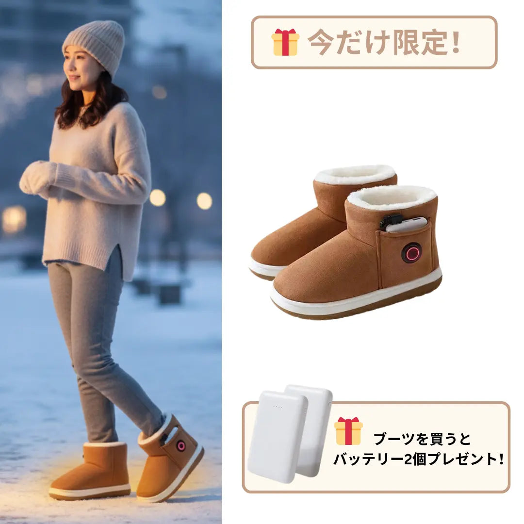 - 足先からふくらはぎまであたたかい – 内蔵ヒーターと極厚モコモコ内側で、冷えやすいつま先までしっかり保温。